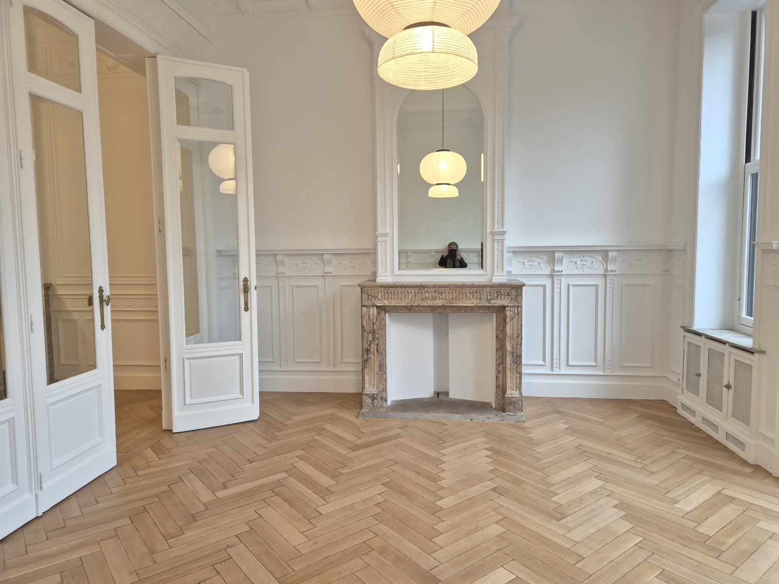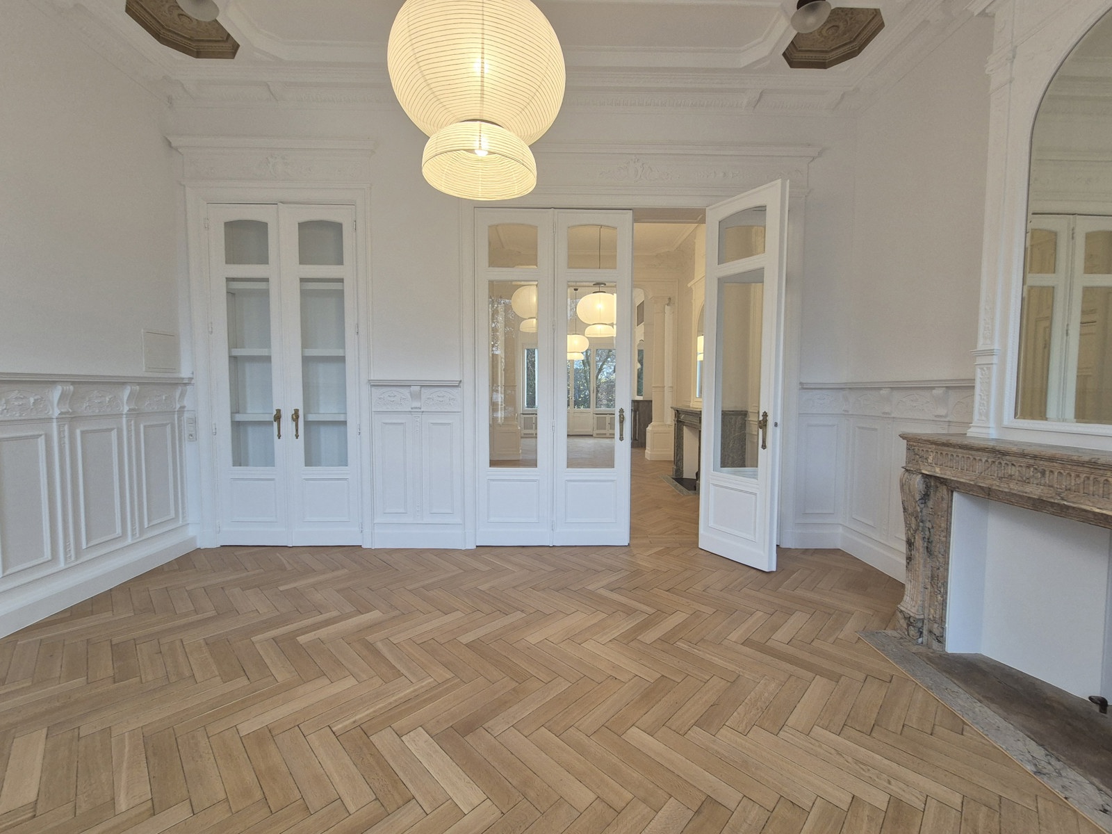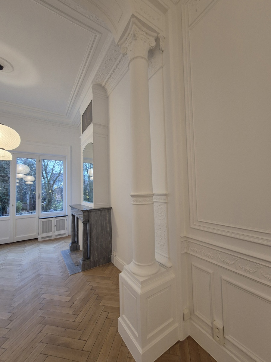 SCHAERBEEK/BIENFAITEURS : Donnant directement sur la très belle place des Bienfaiteurs et non loin du parc Josaphat, au 1er étage sans ascenseur d'un immeuble classé (de +/- 1910- énormément de caractère) magnifique appartement exposition est- ouest. Entrée par le salon central, salle à manger en façade arrière donnant sur la terrasse et sur le jardin , cuisine séparée et totalement équipée , accès jardin privatif de deux (le jardin est réservé à cet appartement), à l'avant : grande chambre avec superbes fenêtres, loggia avec possibilité de mettre un bureau et superbe vue sur la place, salle de douches neuve , wc et emplacement buanderie. Cave. Très sympa et bien situé. Communications aisées, distance à pied de la place Dailly, voire des Institutions européennes. PEB à recevoir . Chaudière au gaz à condensation . Pas de charges d'immeuble, tous les compteurs sont individuels. Elements décoratifs d'origine exceptionnels (moulures, lambris, vitres biseautées, cheminées et trumeaux), double vitrage neuf à l'arrière, isolation des murs accessibles. Appartement très lumineux et traversant. A voir !