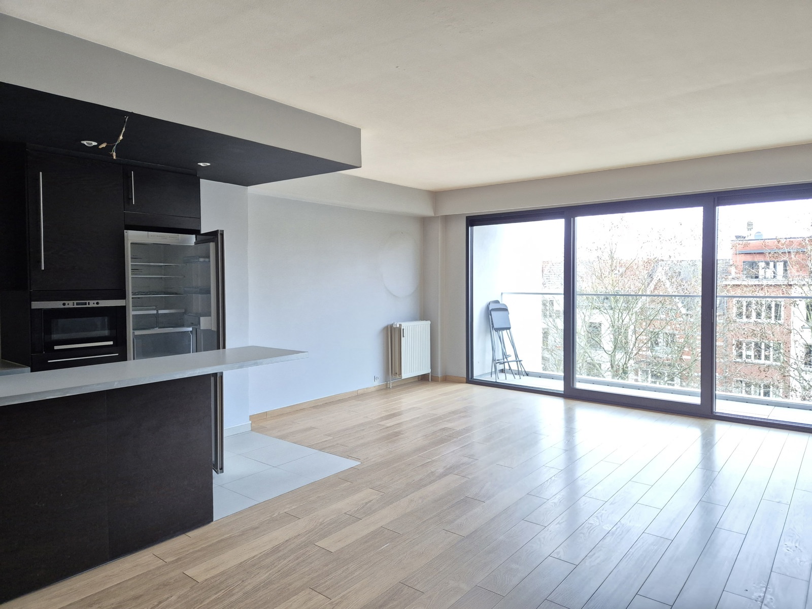Situé au 3 ème étage avant d'un bel immeuble de standing, à 2 pas de nombreux commerces et transports en commun, ce magnifique appartement de 60m² se compose d'un hall d'entrée (porte blindée) avec vestiaire, wc visiteurs, très beau living avec accès à 1 belle terrasse, d'une cuisine super équipée, d'une chambre, d'une salle de bains.